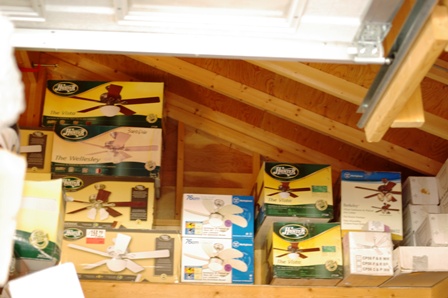 リビングのシーリングファンは一番左上の茶色のをチョイス。お風呂場のシーリングファンは写真中央の白くて小さいタイプが1つ付きます。