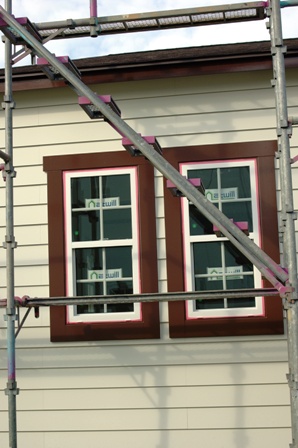 先日行った時はまだ白いままだった外側の窓枠のトリム。