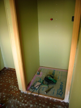 脱衣所に併設されている洗濯機置き場。これから扉がつけられます。