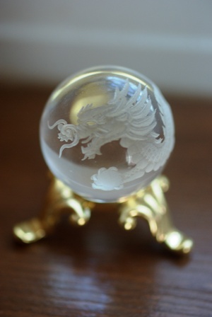 友、Pママから引っ越し祝いを頂きました。ナント、龍の絵が刻まれた水晶の玉!