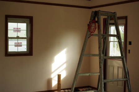 」なんて言っていました。それから2F寝室の窓枠のトリムは黄色っぽいクリーム色にして頂いたのですが、こちらも想像してた以上に黄味が強くて、正直薄過ぎたかな~って感じです。ここはこの色を・・・と言うような、色を選ぶ作業が全て色見本帳を見ながら想像で進めて行かなくてはならないため、本当に難しいです。とは言え今回、屋根、外壁、窓枠トリム、室内の床&窓枠トリムなどなど・・・色については全て旦那さんチョイスなのです。人が選んだ色って凄く新鮮だし、旦那さんの趣味が色やドアノブなどの細かな部分で出せたかなって思ってます。