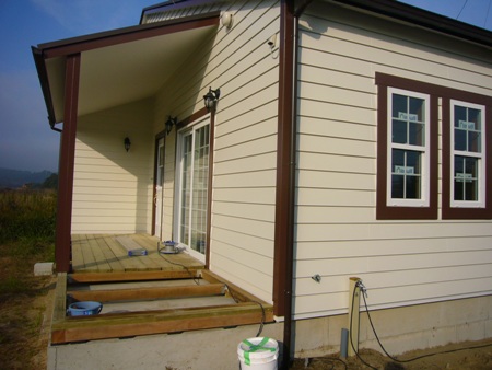 先日行った時はまだ白いままだった外側の窓枠のトリム。