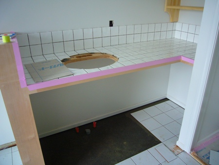 お風呂のタイルも貼られていました。