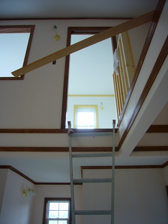 リビングから上を見上げると2Fの寝室が見えるのですが、これが前回日記に書いた、ちょっと後悔しているクリームイエローの窓枠のトリムです。
